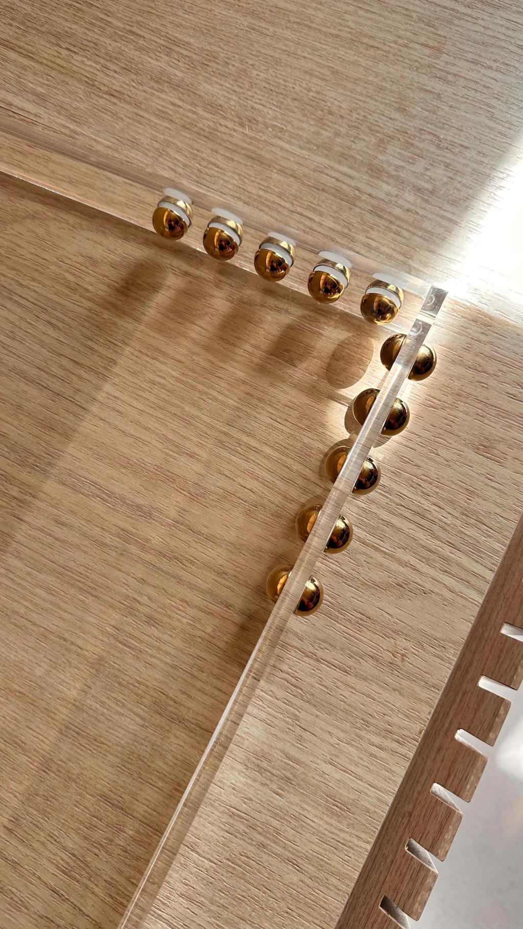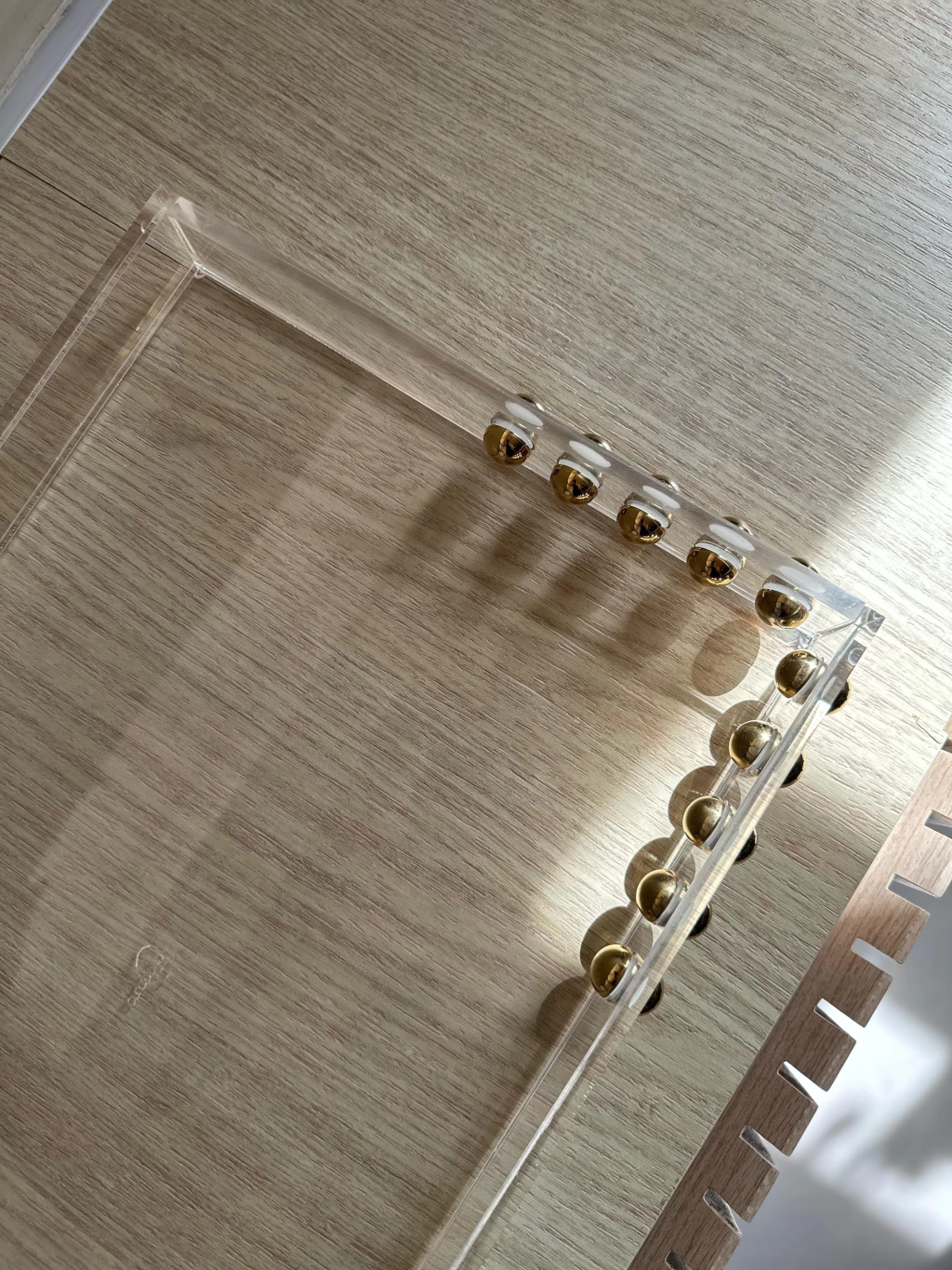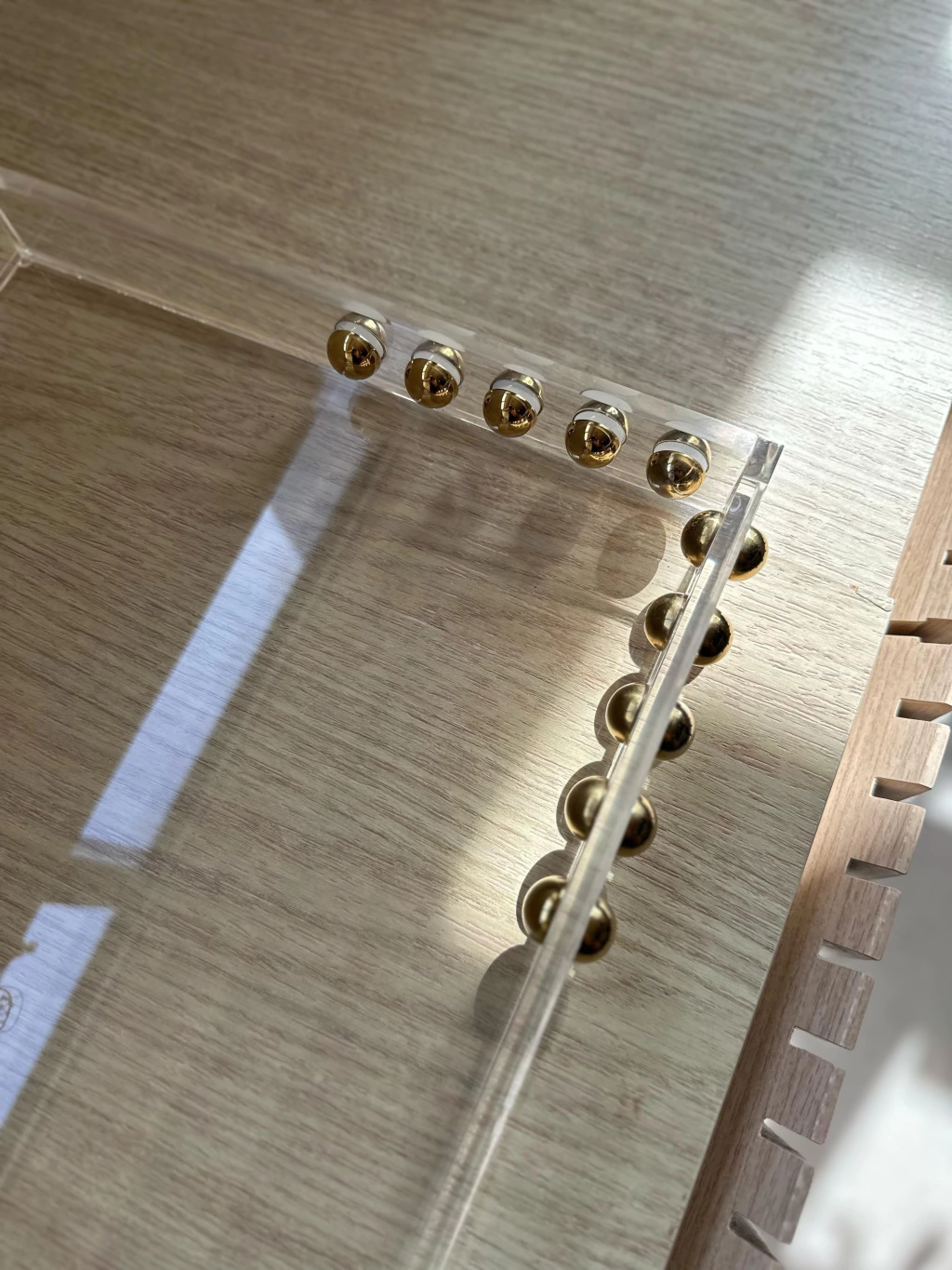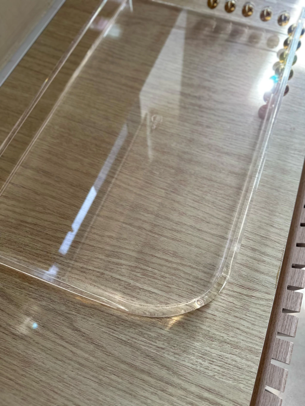 Bandeja em acrílico, medindo: 50x30cm + esfera em aço inox Gold.