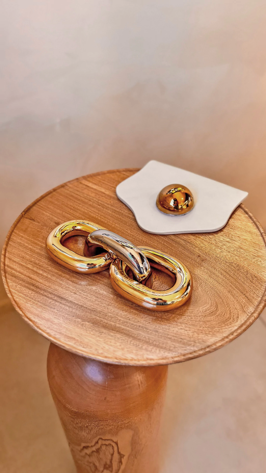 ELO DISCONNECT é uma escultura exclusiva composta por elos em latão com acabamento em latão e níquel, escultura perfeita para quem busca uma peça elegante e significativa.