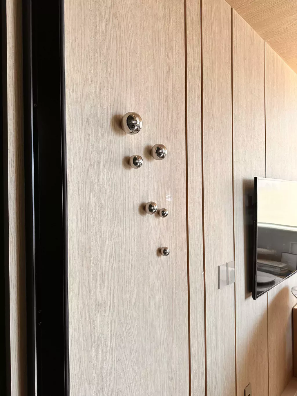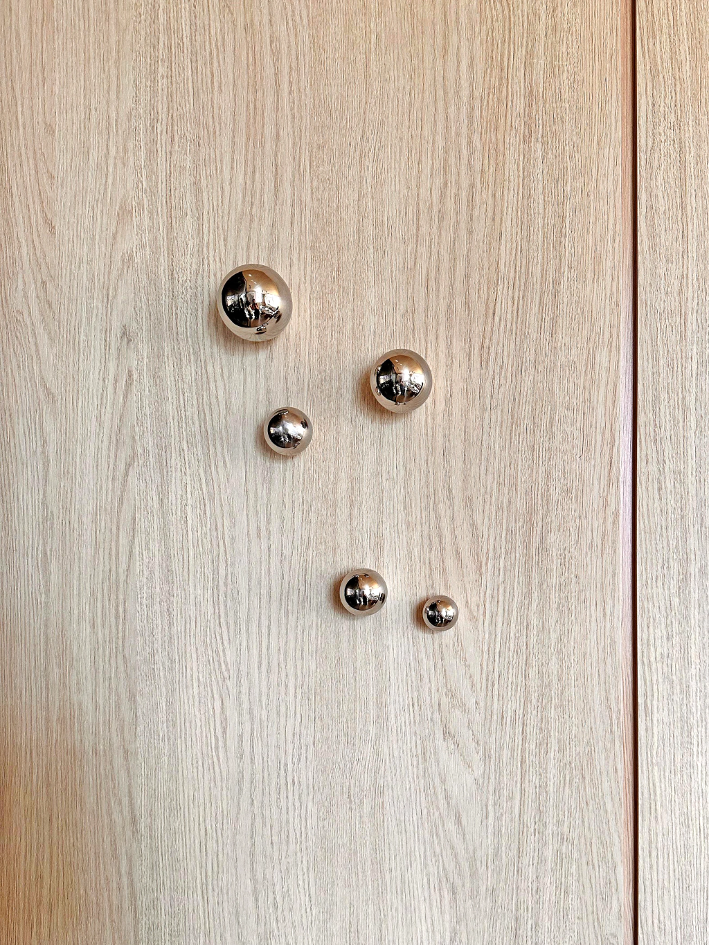 As Esferas em Aço Inox 304 são ideais para fixação na parede ou para usar conforme sua criatividade, trazendo um toque moderno e resistente ao ambiente. Disponíveis em três tamanhos práticos: - P: 3,8 cm - M: 6 cm - G: 7,6 cm