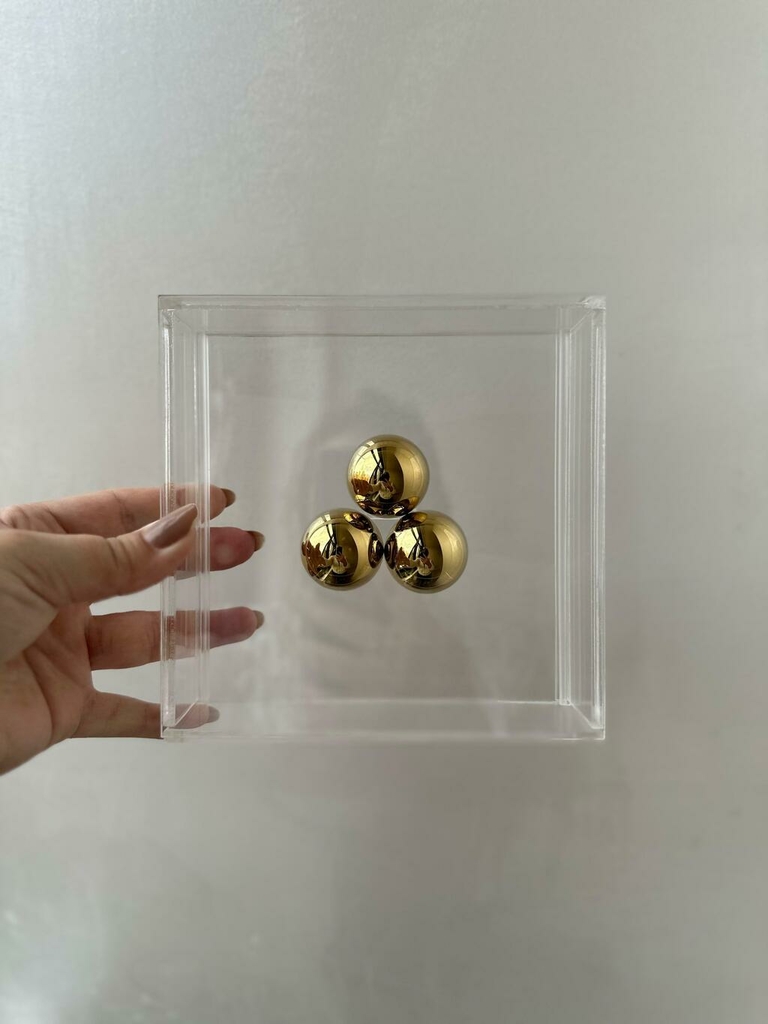 QUADRO FAAS - DUZIA é uma peça versátil e moderna, perfeita para decorar sua parede, centro de mesa ou estante com estilo único. Composto por 12 meia esferas em aço inox, este quadro de 30x30 cm em acrílico funciona também como uma escultura que ilumina qualquer ambiente. Ideal para quem busca design diferenciado e funcionalidade em uma só peça. Renove sua decoração com essa arte que brilha onde estiver!